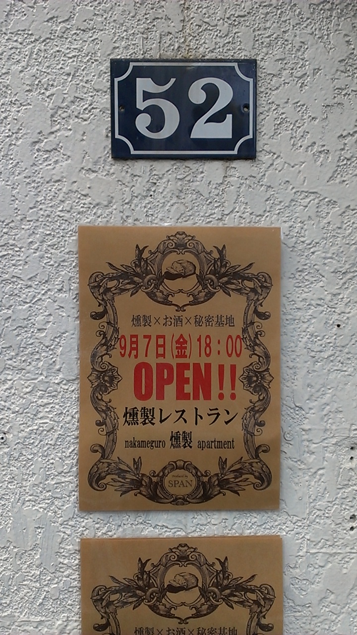 昨夜は中目黒燻製アパートメントさんのプレオープンにお邪魔してきました。